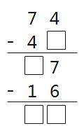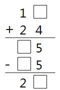 | 65 - ( ) = 16 | 28 + ( ) = 29 | 96 - ( ) = 50 | 65 - ( ) = 38 |